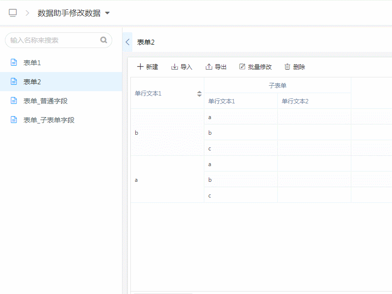| 子表字段 | 子表单内的字段 |