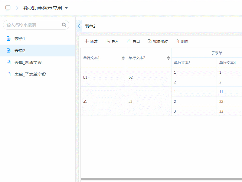| 主表字段 | 普通字段,非子表单内的字段 |